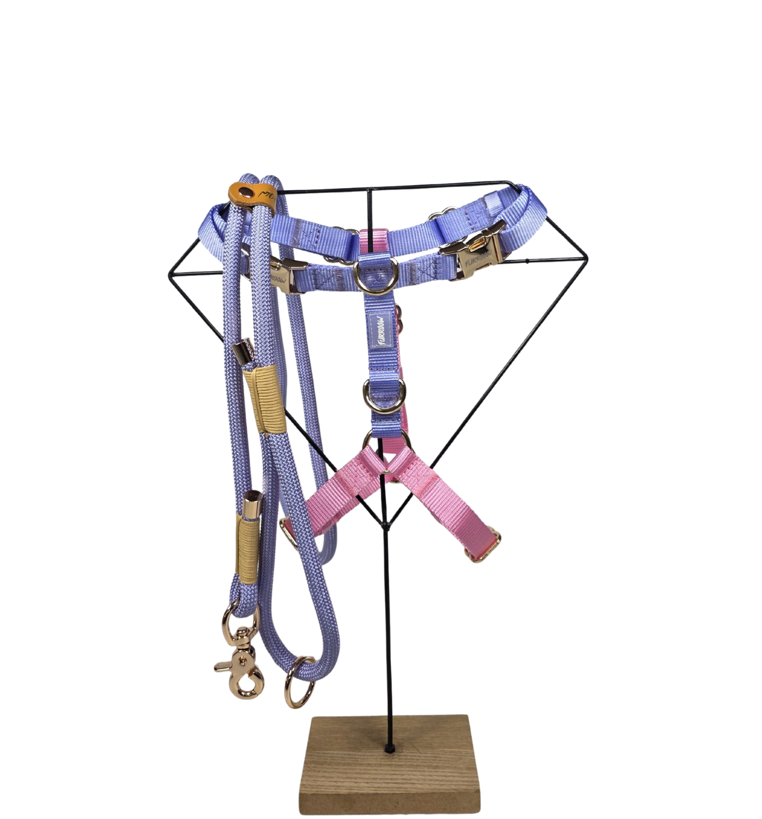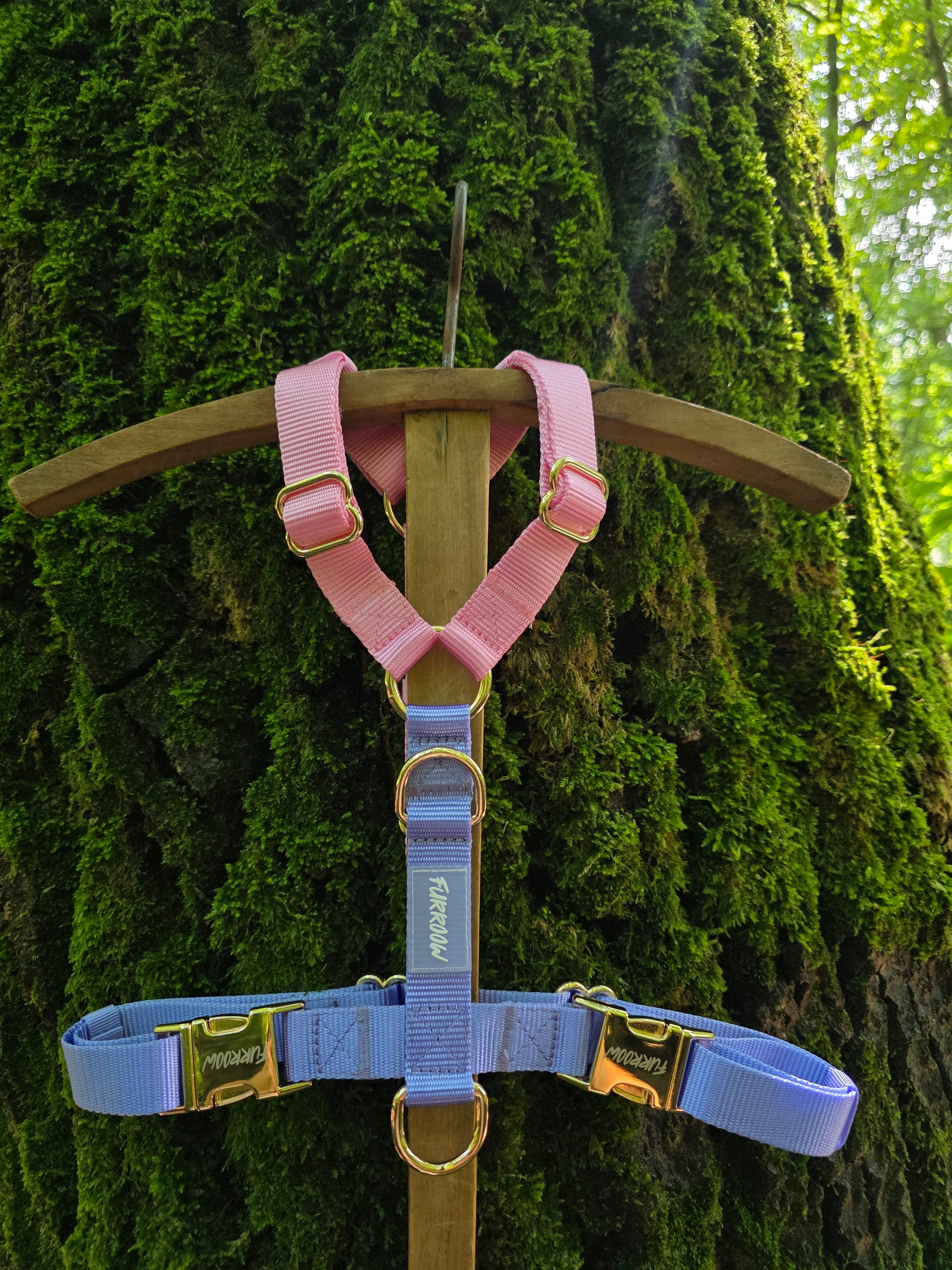 Geef jouw hond het comfort én de stijl die hij verdient. Dit verstelbare hondentuigje met bijpassende riem combineert zachte pastelkleuren met stevige, duurzame materialen.